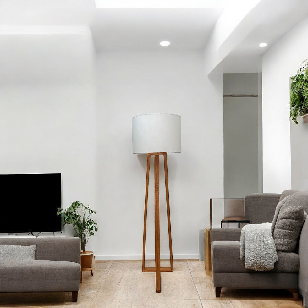 Cuatro Patas Cedro con Pantalla de Tela Lino Crudo