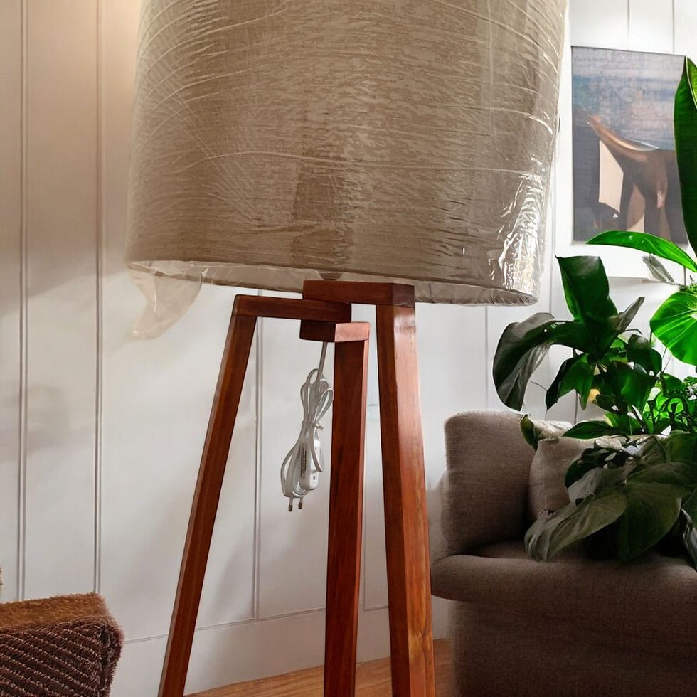 Trípode natural con pantalla de tela lino